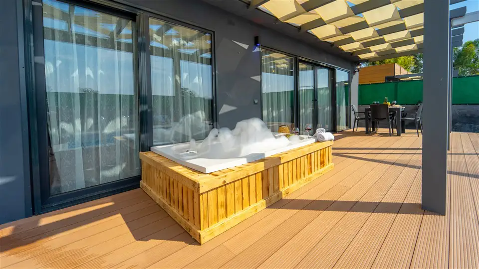 Villa Hayal4; korunaklı yapısı sayesinde havuz ve bahçe alanı dışarıdan gözükmemektedir.Villamızda rahatlıkla gözlerden ırak havuz ve jakuzi keyfi yapabilirsiniz.