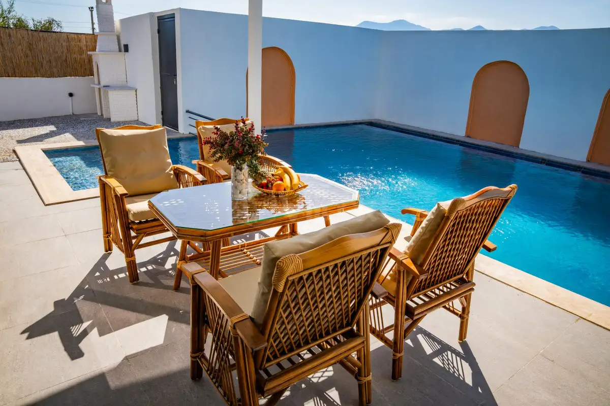Villa İbiza; korunaklı yapısı sayesinde havuz ve bahçe alanı dışarıdan gözükmemektedir.Villamızda rahatlıkla gözlerden ırak havuz ve barbekü keyfi yapabilirsiniz.